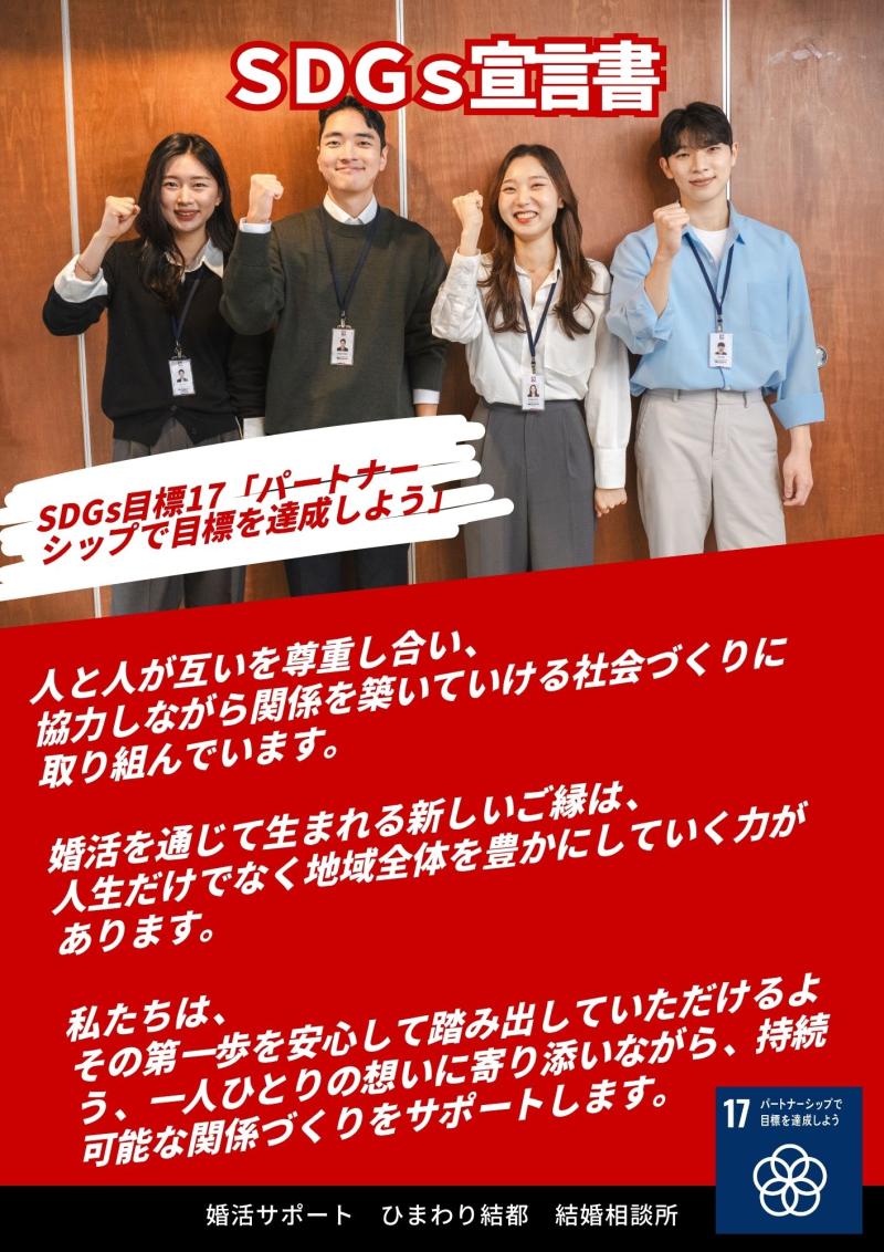 【目指すゴールと自社の活動の関係】当相談所は、SDGs目標17「パートナーシップで目標を達成しよう」を大切にし、人と人が互...