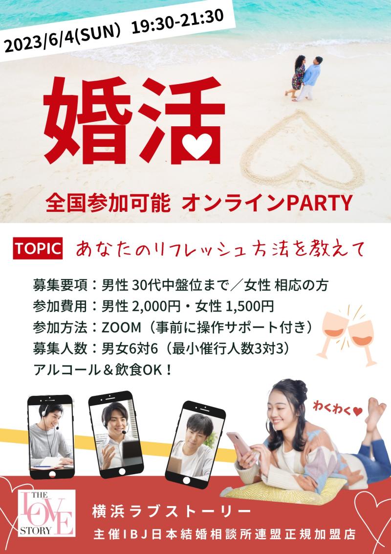 6/4(日)【弊社主催】【非会員様対象 !】横浜ラブストーリー♥オンラインZoomパーティ