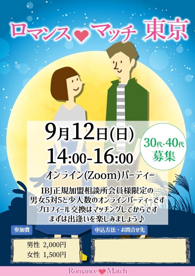 【結婚相談所・ひまわり結都主催:会員様限定】 『ロマンスマッチ東京』 💛ZOOMにて婚活パーティーのお知らせです。