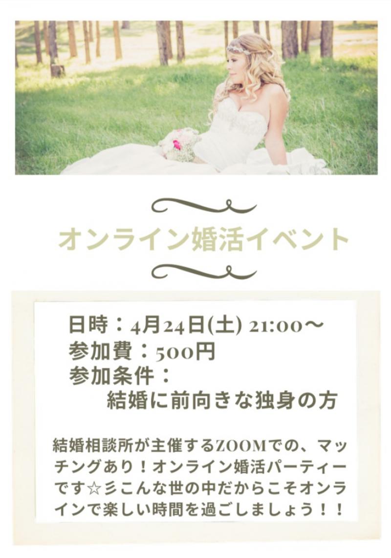 【イベント開催】オンライン婚活パーティー♪第三弾!4/24(土)開催!(結婚相談所 主催)