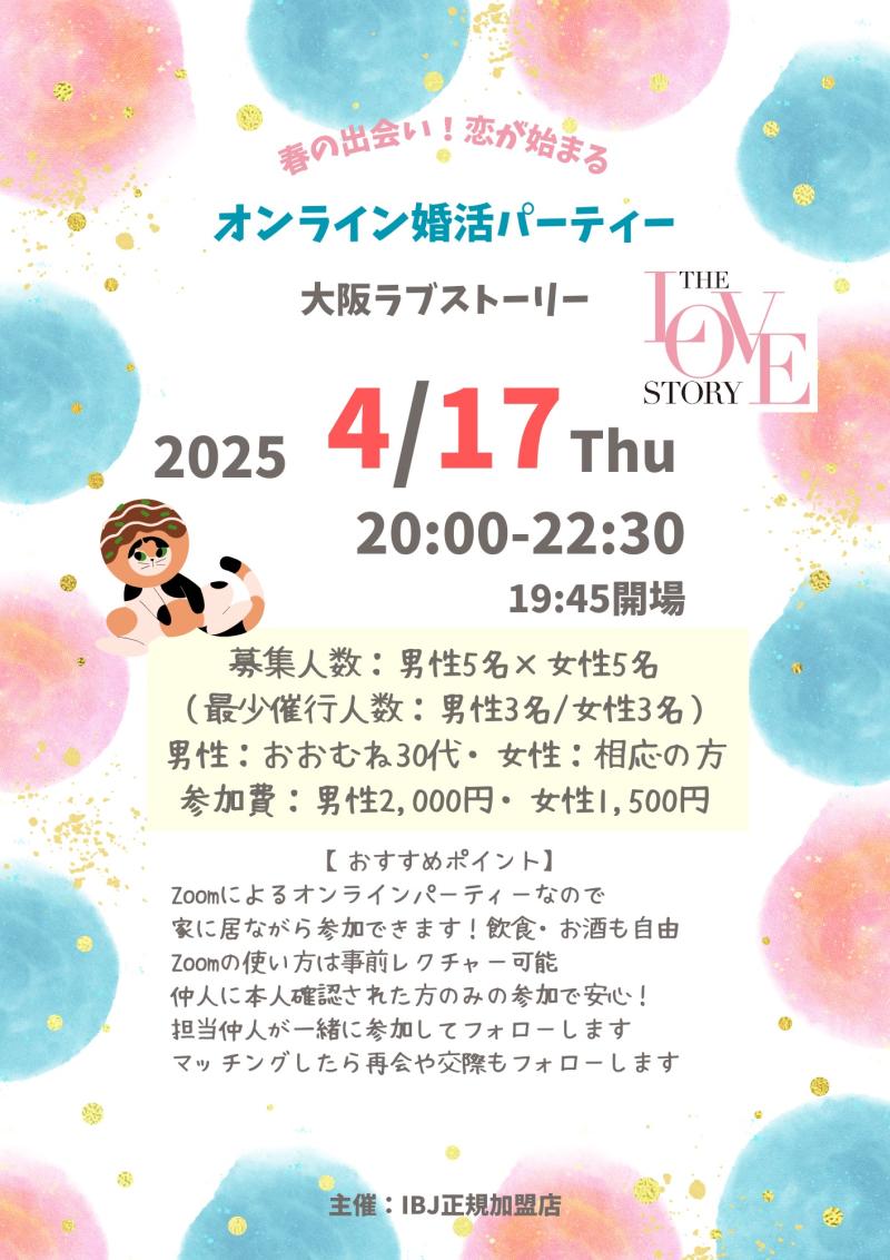 4/17オンライン婚活パーティー「大阪ラブストーリー」参加者募集