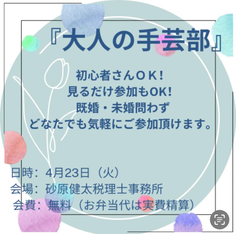 大人の手芸部 4/23 開催