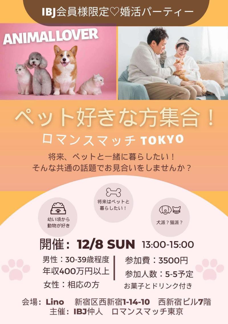 12/8(日)【弊社主催】【ロマンスマッチTOKYO ]ペット好き婚活パーティー開催!