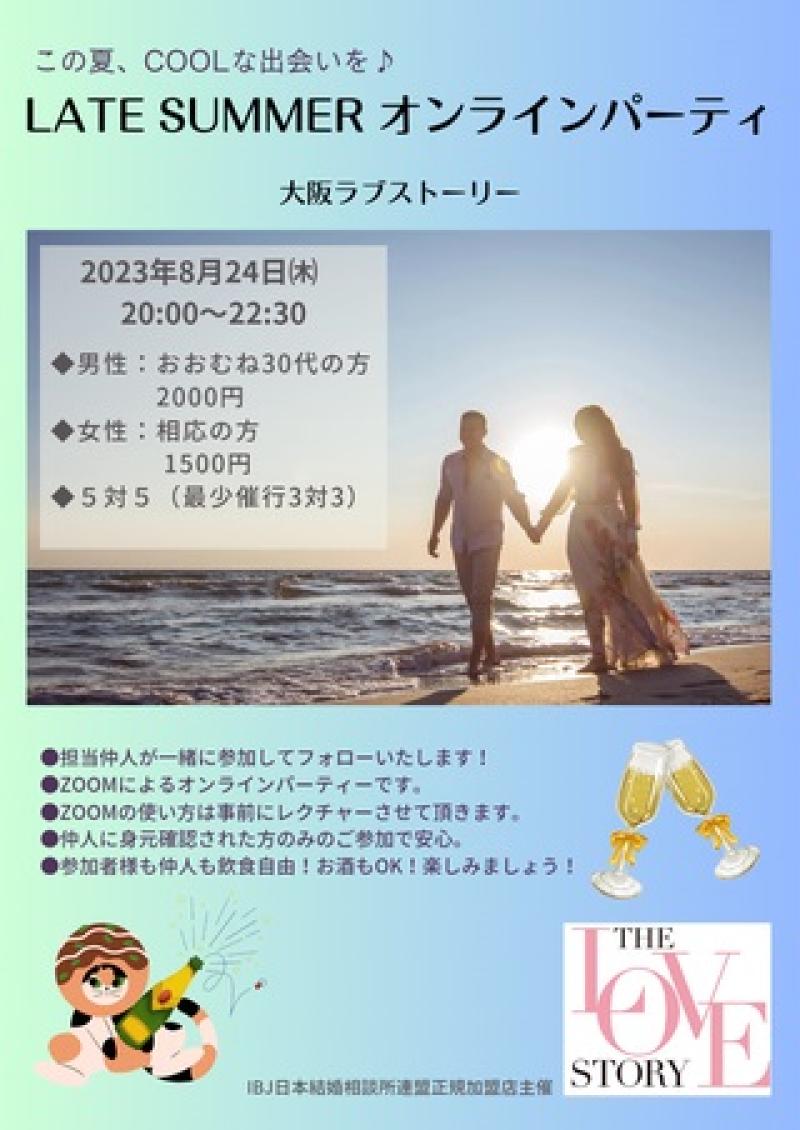 8/24(木)【弊社主催】【非会員様対象 !】大阪ラブストーリー ♥オンラインZoomパーティ