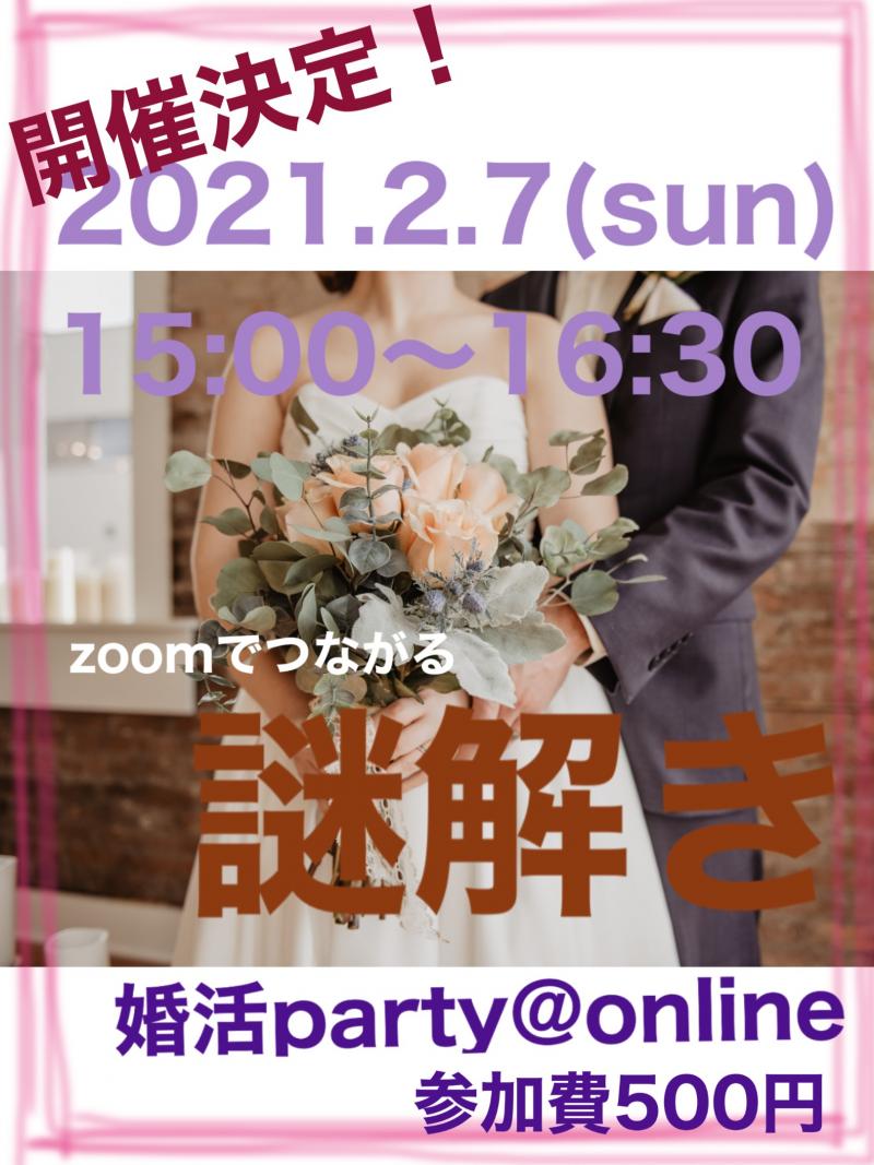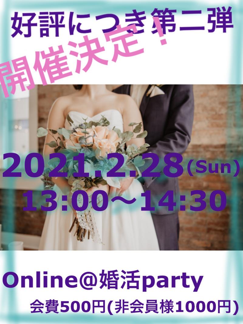 【イベント開催】オンライン婚活パーティー♪第二弾!2/28(日)開催(結婚相談所 主催)